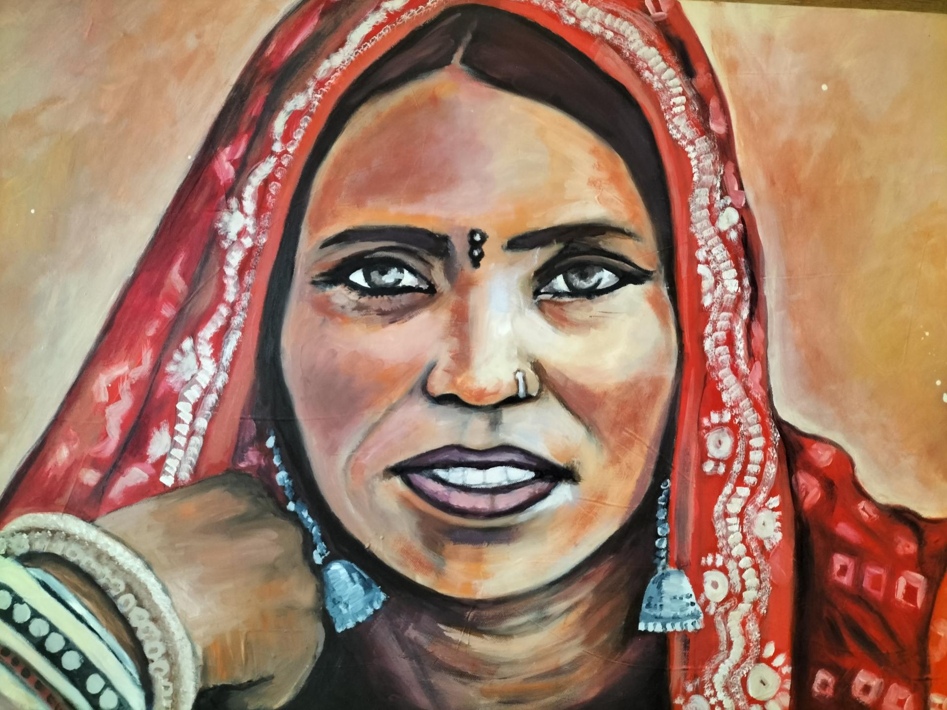 Passionnée par l'humain, l'art et le voyage, je peins essentiellement des visages d’ailleurs, inspirés surtout par l'Afrique et l'Inde.